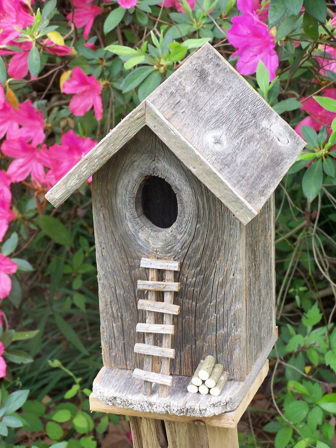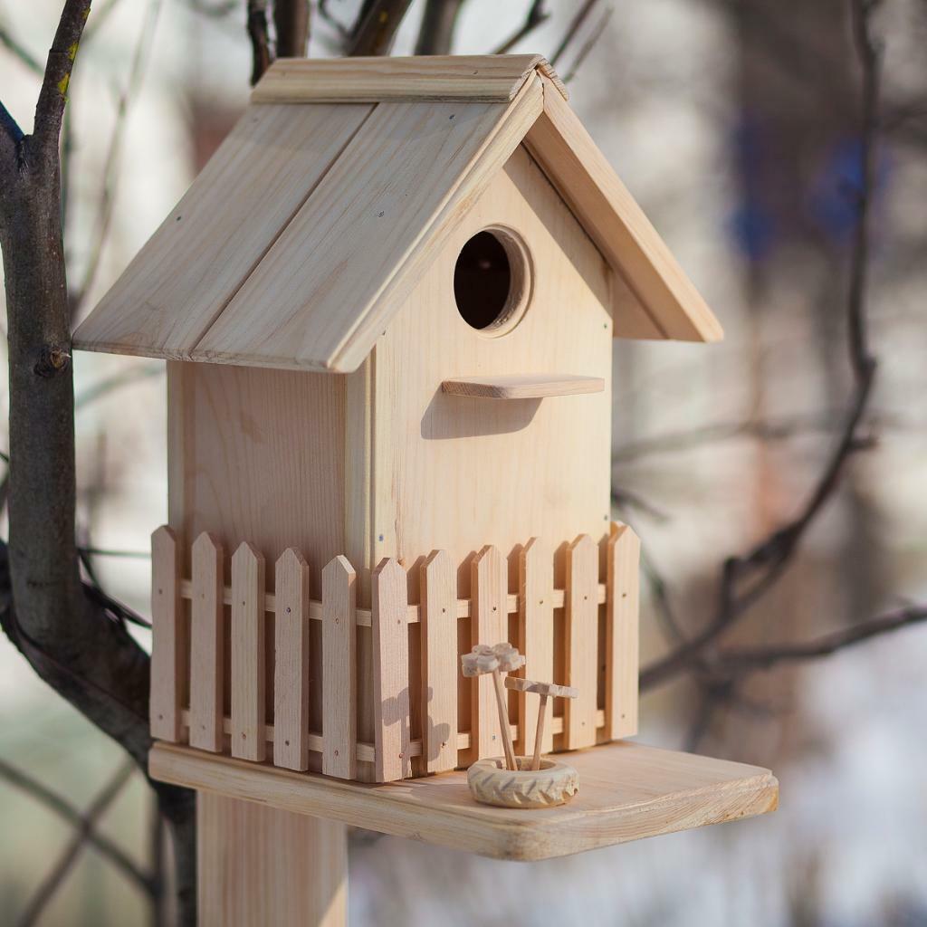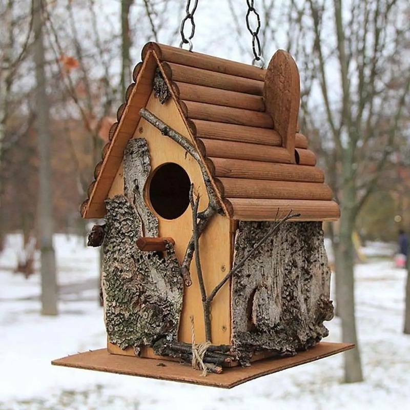 - Синичник - отличается от скворечника размерами: дно 10-12 см, высота 25-30 см, диаметр летка — 30-35 мм. Его могут заселять мухоловки-пеструшки, горихвостки, воробьи, воробьиные сычи.